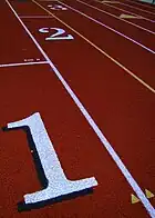 Υλικό ταρτάν σε αφετηρία δρόμου 200 μέτρων.