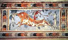 - (ιστορία, αρχαία Ελλάδα) «άθλημα» στα πλαίσια θρησκευτικών τελετών κατά το οποίο τολμηροί νέοι αντιμετώπιζαν κάποιον ταύρο, προσπαθώντας να τον πιάσουν ή να κάνουν διάφορα ακροβατικά νούμερα ή άλματα πάνω του ή κοντά του