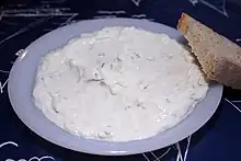 - (γαστρονομία) ορεκτικό που παρασκευάζεται με γιαούρτι, τριμμένο αγγούρι, σκόρδο, λάδι, ξύδι, αλάτι και πιπέρι και συνοδεύει κρέας, λαχανικά ή απλώς μια φέτα ψωμί