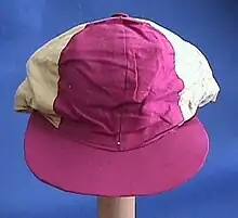 - καπέλο με πλατύ μπροστινό γείσο, όπως αυτό που φορούν οι επαγγελματίες αναβάτες αλόγων
