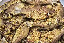 - που έχει τηγανιστεί, που έχει μαγειρευτεί/ψηθεί στο τηγάνι