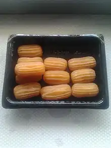 - (γλυκό) κυλινδρικό γλυκό τηγανιού με σιρόπι