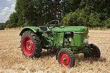- μεγάλο όχημα με μεγάλους οπίσθιους τροχούς και μικρότερους εμπρόσθιους που χρησιμοποιείται σε αγροτικές εργασίες.