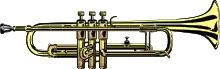 - (μουσικό όργανο) αερόφωνο μουσικό όργανο με μεταλλικό επιστόμιο σε σχήμα κούπας, που ανήκει στην οικογένεια των χάλκινων πνευστών