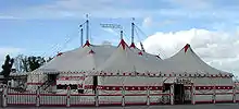 - τσίρκο < (άμεσο δάνειο) ιταλική circo < λατινική circus < αρχαία ελληνική κίρκος (αντιδάνειο) < πρωτοϊνδοευρωπαϊκή ρίζα *sker- (κάμπτω, γυρίζω)