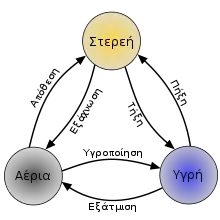 - (χημεία) κατάσταση ενός υλικού, στερεή, υγρή ή αέρια