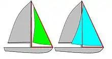 φλόκος (πράσινο) και γενοβέζικος φλόκος (γαλάζιο)