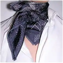Φουλάρι μεταξωτό δεμένο στο λαιμό.