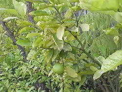 - (φυτό) αειθαλές φυτό (λατινικό όνομα Citrus maxima) που ανήκει στα εσπεριδοειδή, με καρπούς που έχουν σχήμα σφαιρικό ή όπως του αχλαδιού, χρώμα ανοιχτό πράσινο έως κίτρινο και πικρόξινη γεύση