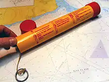- ↪ φωτοβολίδα αλεξιπτώτου (που εκτοξεύεται ψηλά και πέφτει σταδιακά με αλεξίπτωτο) ώστε οι ναυτιλλόμενοι να την εκτοξεύουν όταν κινδυνεύουν)