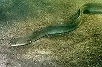 Ευρωπαϊκό χέλι (Anguilla anguilla). Άλλοτε πολύ κοινό στα ευρωπαϊκά ποτάμια, θεωρείται πλέον απειλούμενο είδος.