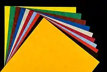 - λεπτό υλικό, φτιαγμένο από ξύλο ή άλλο υλικό, σε διάφορα μεγέθη και χρώματα. Χρησιμοποιείται, ανάλογα με την ποιότητά του, για γραφή, περιτύλιγμα κ.λπ.