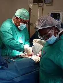 - (ιατρική, επάγγελμα) γιατρός ο οποίος με τη χρήση ειδικών εργαλείων εκτελεί ιατρικές πράξεις (εγχειρήσεις) απευθείας στους ιστούς του ανθρώπινου σώματος