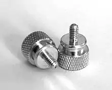 - (τεχνολογία, μηχανολογία) βίδα που μπορεί να βιδωθεί-ξεβιδωθεί με το χέρι χωρίς την χρήση εργαλείων, επειδή έχει αντιολισθητική κεφαλή