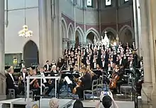 ορχήστρα (μπροστά) και χορωδία (πίσω) σε συναυλία