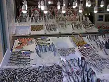 - (αλιεία) το μαγαζί που πουλάει ψάρια, το ιχθυοπωλείο