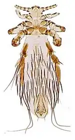 - (έντομο) άπτερο ζωύφιο που παρασιτεί στο δέρμα του ανθρώπου και των ζώων