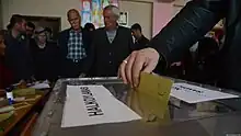 Ψηφοφόρος, την ώρα που ρίχνει τον φάκελο στην κάλπη.