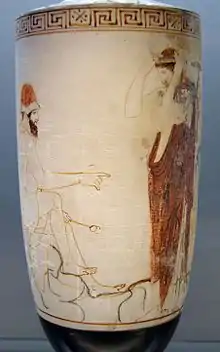 Λέκυθος (450 π.Χ.) με τον Ερμή ως Ψυχοπομπό να ετοιμάζεται να οδηγήσει μια ψυχή στον Κάτω Κόσμο