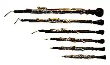 ![]() Είδη του όμποε: heckelphone, μπάσο όμποε, κορ ανγκλέ (cor anglais), όμποε ντ' αμόρε, το όμποε και πίκολο όμποε. |
