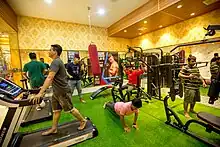 δωμάτιο με διάφορα όργανα γυμναστικής