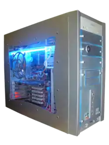 - (υλικό υπολογιστή) το σιδερένιο κουτί (θήκη) που περιέχει τα εξαρτήματα ενός ηλεκτρονικού υπολογιστή (ή άλλης ηλεκτρικής συσκευής)