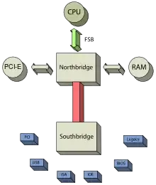 - (πληροφορική) μικροεπεξεργαστής της μητρικής κάρτας (motherboard) που συνδέεται με την κεντρική μονάδα επεξεργασίας (CPU) μέσω του northbridge και απαιτεί χαμηλότερες ταχύτητες για να εξυπηρετήσει αντίστοιχες συσκευές